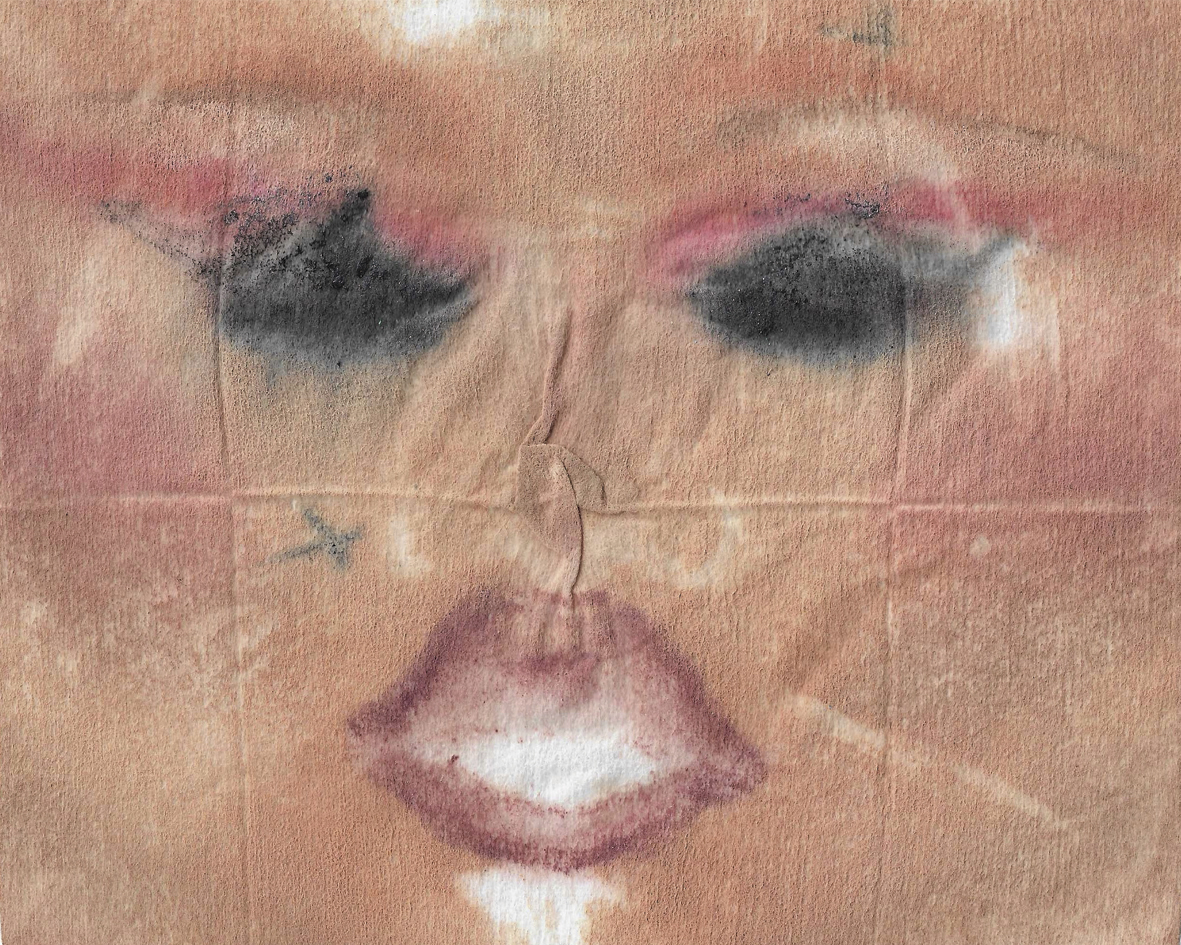 Desde el año 2017 he registrado cada uno de mis maquillajes a través de toallas desmaquillantes, recolectando a la fecha más de 100 piezas únicas con los restos de mi rostro, entendiendo así que este material no es solo un desecho si no que logra capturar fielmente, casi como un grabado, aquellos momentos en que Nia habita sobre mi piel.